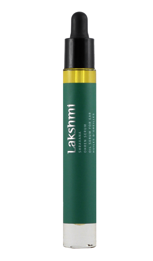 Das dritte Serum dieser Öle Serie von Lakshmi ist für die Pflege der Ohren und Gehörgänge. Es verhindert trockene Haut in den Gehörgängen und unterstützt die selbstreinigende Wirkung der Ohren. Die tägliche Pflege der Ohren mit diesem Kräuteröl wird im Ayurveda von Kindheit an empfohlen. Es ist wichtig, um Stress zu reduzieren, hilft bei Vata-Störungen und soll auch Ohrgeräusche reduzieren. Der Name Shravana kann in etwa übersetzt werden mit "die Wahrheit Hören". Ein weiser Freund hat die Mondkonstellation Shravan gern als "kosmisches Ohr" bezeichnet.